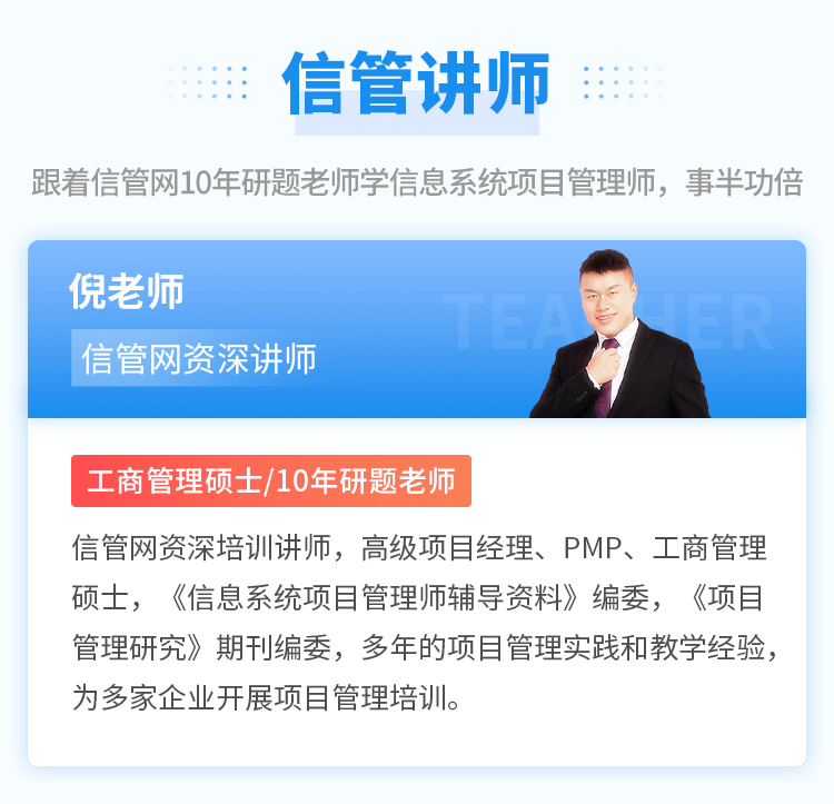 當(dāng)前位置:信管網(wǎng) >> 信息系統(tǒng)項目管理師視頻培訓(xùn)課程 >> 信息系統(tǒng)項目管理師精講視頻班