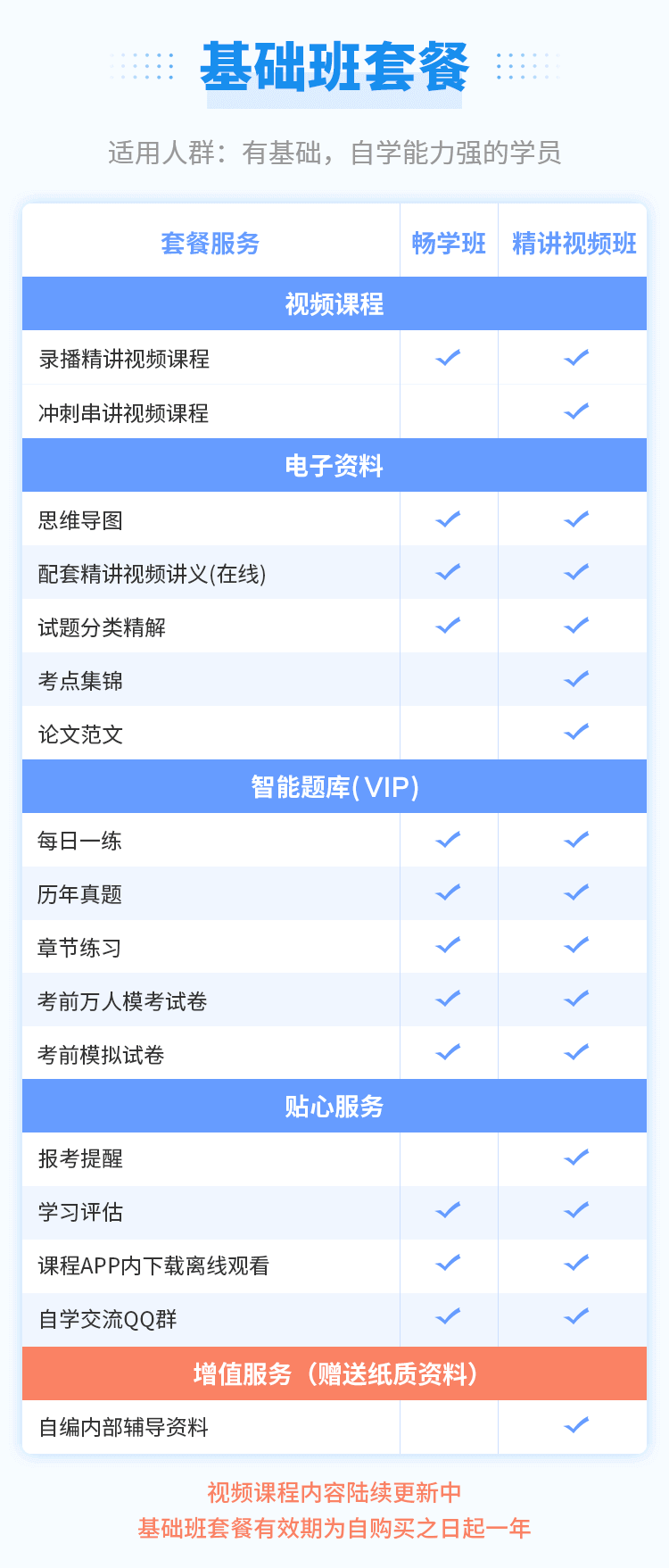 包含錄播精講視頻課程(倪老師)、綜合知識真題解析課程、紙質(zhì)內(nèi)部輔導(dǎo)資料、論文范文、考前點睛資料、智能題庫隨時刷題、考前模擬試卷、電子資料輔助學(xué)習(xí)等。